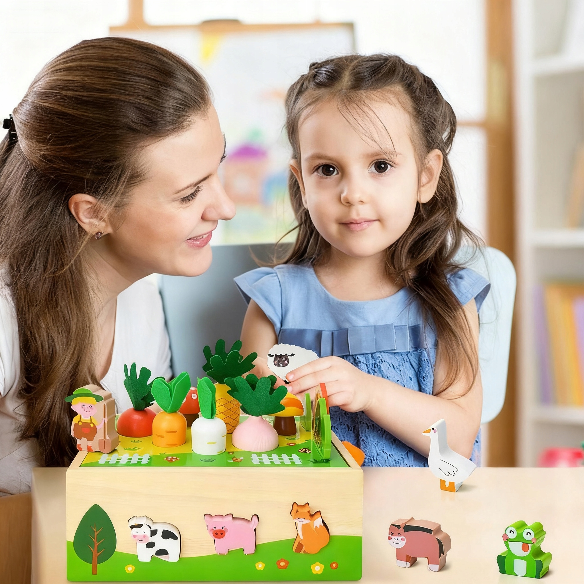 Ця навчальна іграшка дозволяє малюкам розвивати свої пізнавальні навички та творчі здібності, вирощуючи овочі та розставляючи тварин. Це стимулює їхнє мислення та допомагає розвивати дрібну моторику та координацію рук і очей. Це чудова іграшка для дітей.