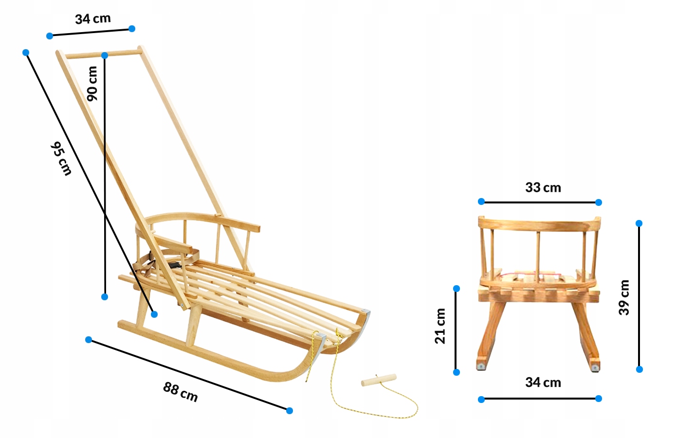 ⛄Розміри саней: довжина 88 см, ширина 34 см, загальна висота 39 см