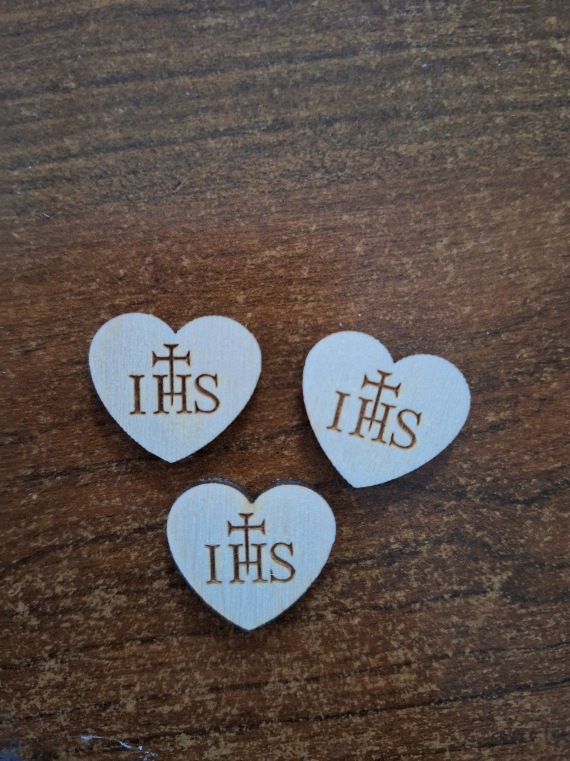 дерев'яні SCRAPKI сердечка хост IHS декорація ПЕРШЕ СВЯТЕ ПРИЧАСТЯ x10 2см
