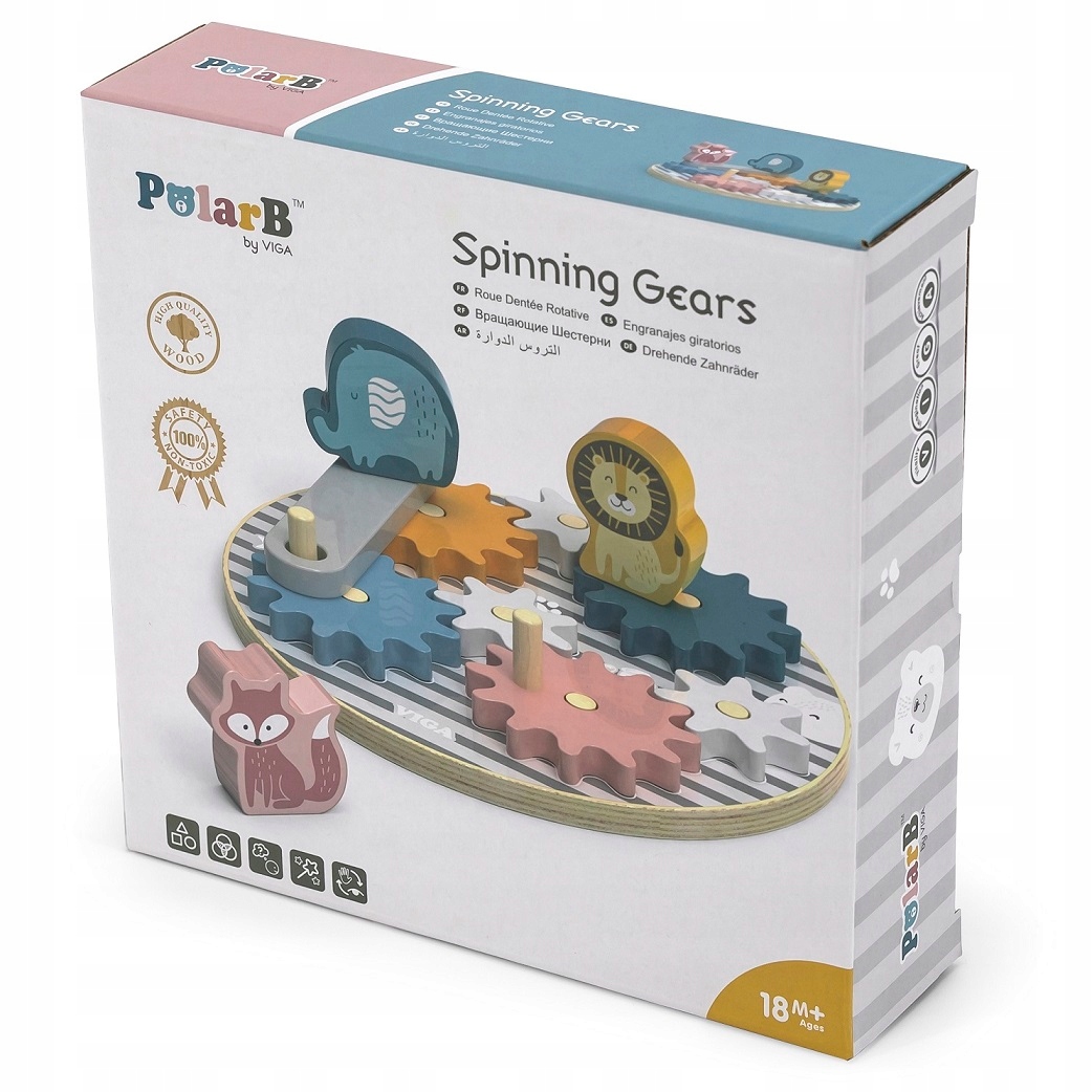 Дерев'яні шестерінки із тваринами від відомого бренду Viga — ідеальна іграшка для дітей, які хочуть пізнавати навколишній світ. Точно виготовлені елементи дозволять вам доторкнутися до кожної деталі фігурок тварин - головних героїв серії PolarB. Іграшка допоможе вам вивчити основні закони фізики - як працює зубчасте колесо. Коли ви обертаєте перше колесо, наступні елементи приводяться в рух, а сила передається наступним передачам.