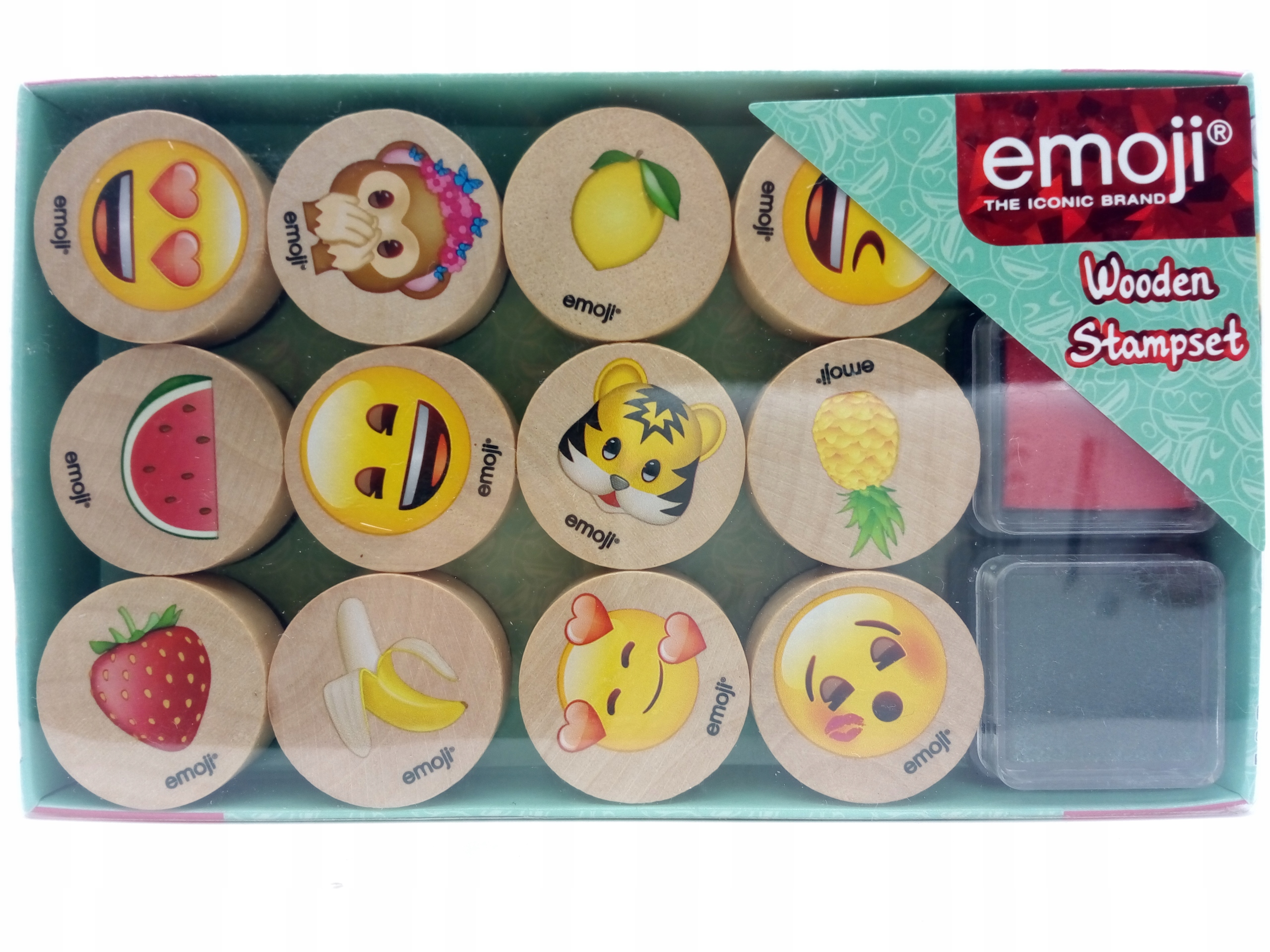 ДЕРЕВ’ЯНІ ШТАМПИ EMOJI STAMPS НАБІР З 2 ЧОРНИЛ ПЛАСТИКОВІ АКСЕСУАРИ DIY