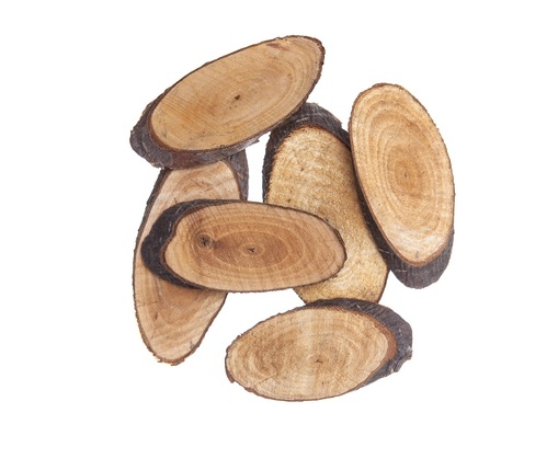 Поліровані міні-скибочки дерева є ідеальною основою для всіх проектів домашнього декору, аранжування столів, квіткових прикрас, медіа-проектів, скрапбукінгу та багатьох інших. Також чудово підходить як наповнювач для композиції, а також як основа, на якій ми можемо за допомогою випалювача створити оригінальний візерунок, який персоналізує наш дизайн.