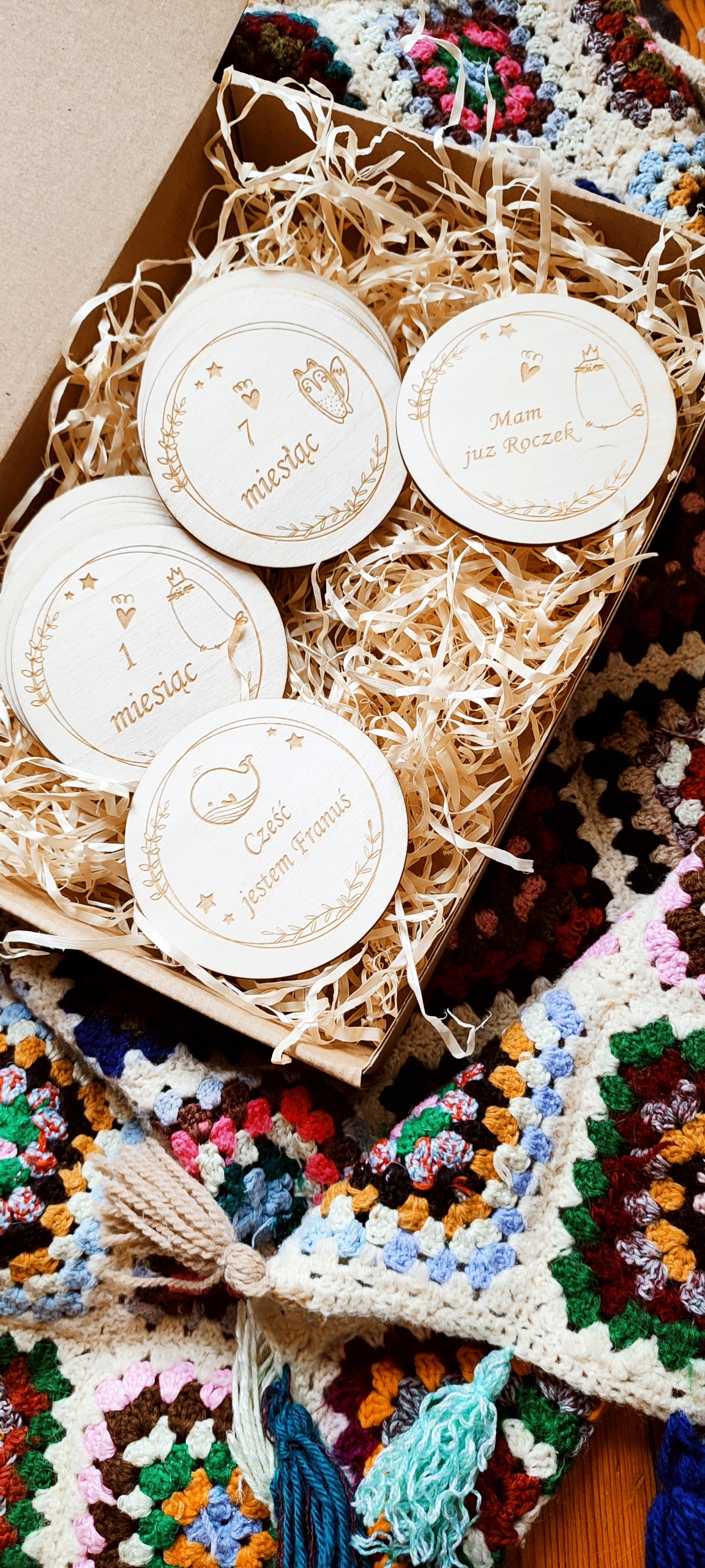 DREWNIANE TABLICZKI KARTY DO ZDJĘĆ Z MIESIĄCAMI DLA DZIECKA NOWORODKA 1 ROK