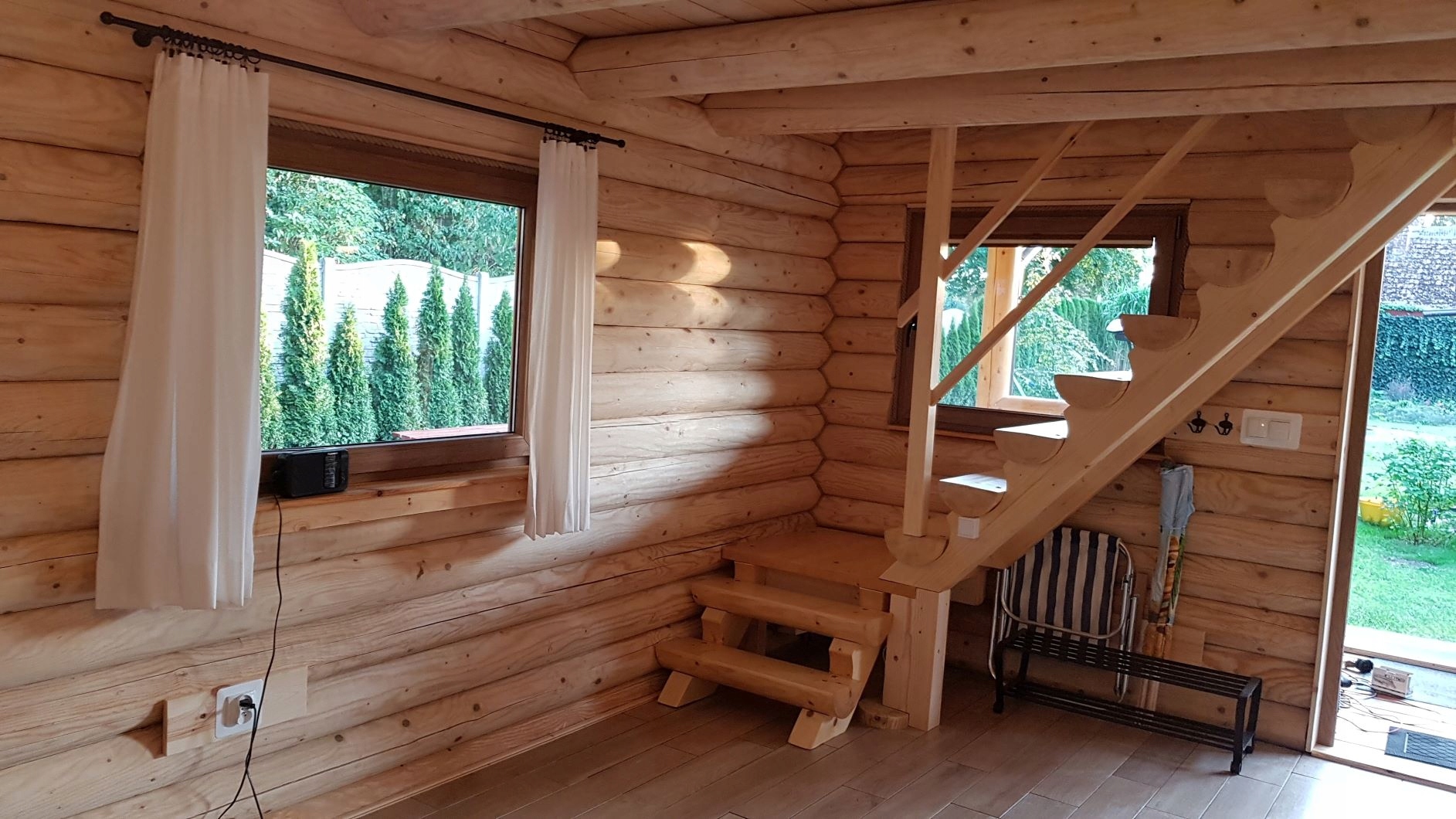 Дерев'яні забігаючі СХОДИНИ 2600 злотих брутто, виготовлені з напівколоди 22 см