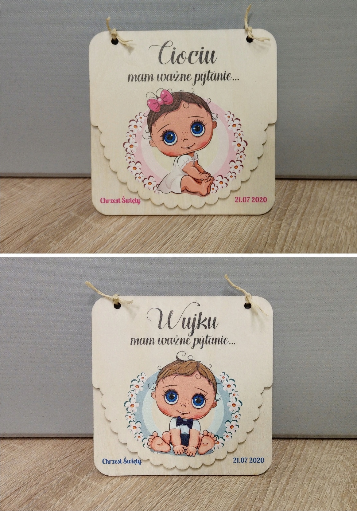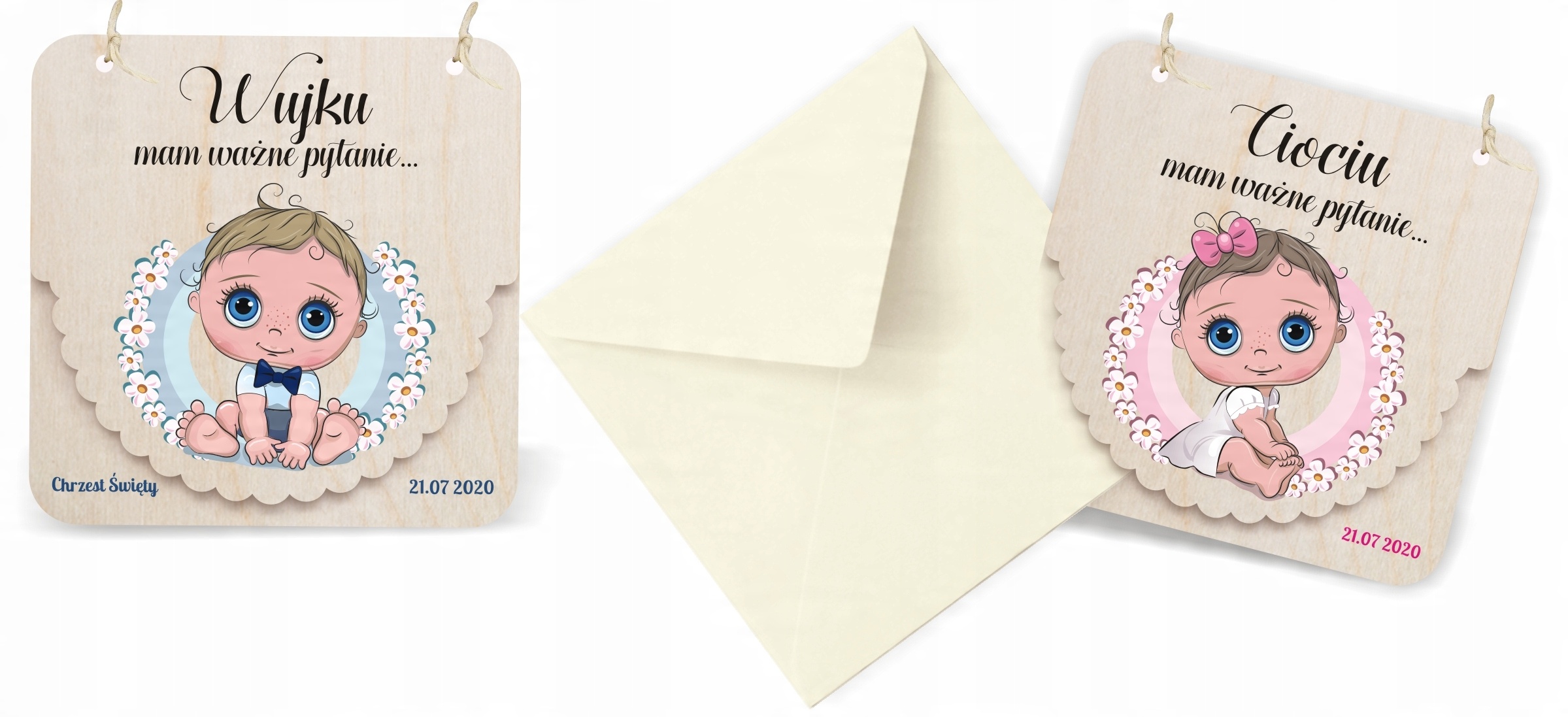 Дерев'яні запрошення на хрещення для хресних батьків