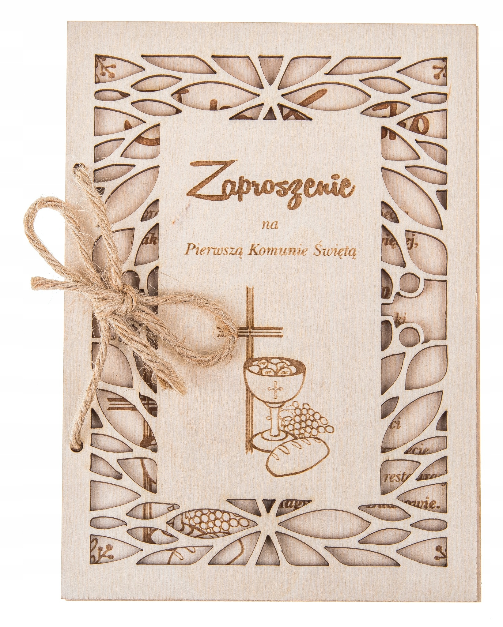 Дерев'яні запрошення з персональним гравіюванням, безперечно, є одним із найоригінальніших видів запрошення, а також надзвичайно елегантним та ексклюзивним. Розроблено для посилання на Перше Причастя в кожному елементі.