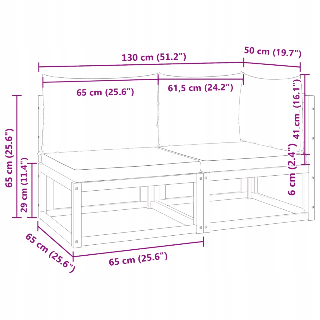 - Диван розміри: 65 x 65 x 65 см (Ш x Г x В)