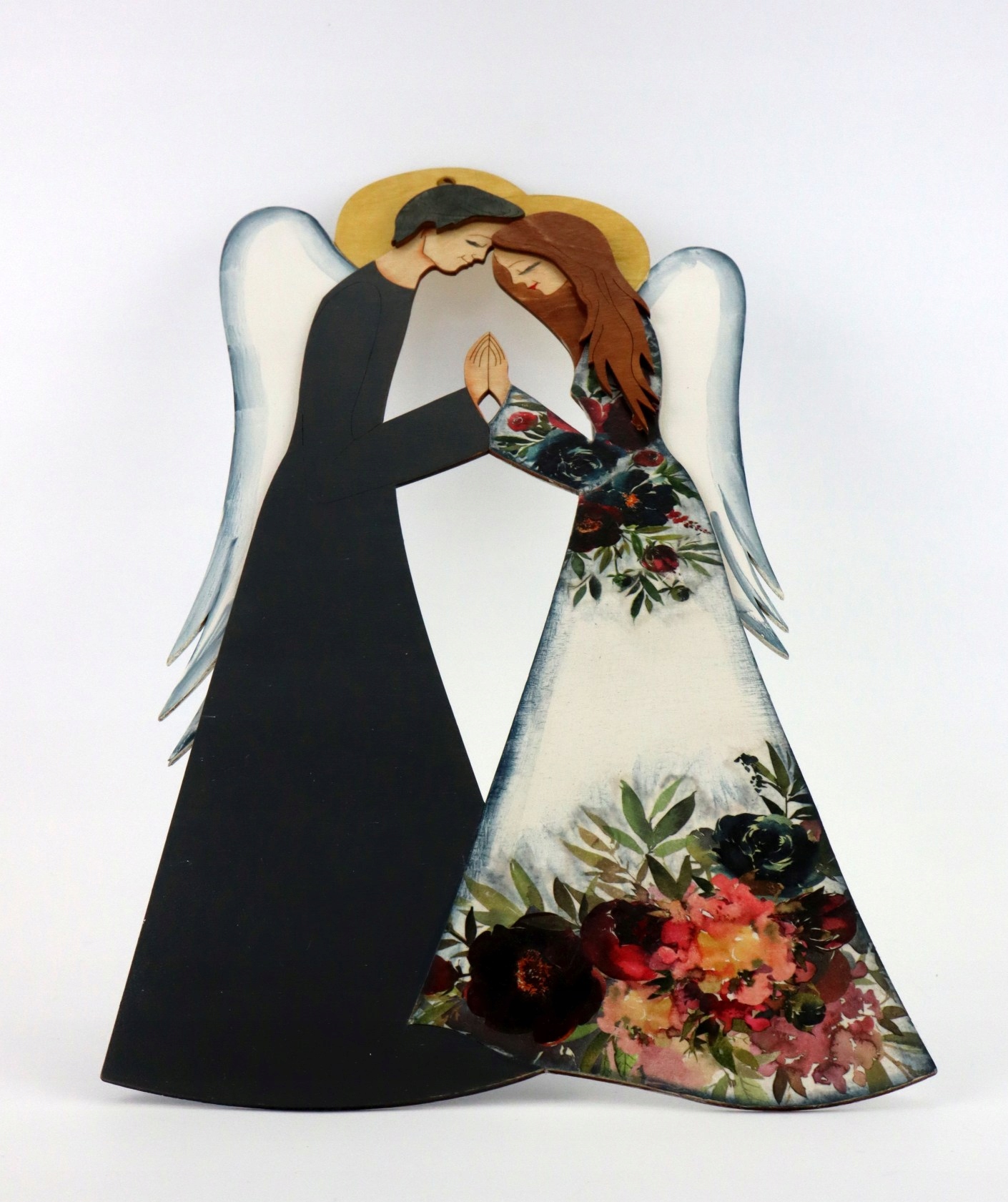Янголи розписані вручну та розфарбовані, включно з макіяжем :), додатково прикрашені квітковим мотивом методом декупажу.