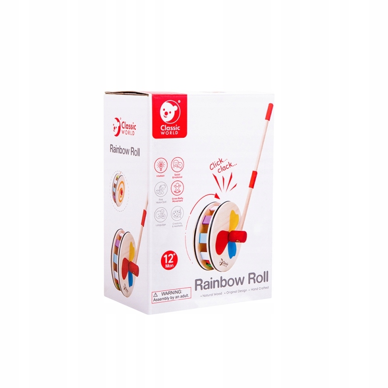 - - Штовхач веселки не нагадує класичні натискання іграшок. Він діє як звичайний штовхач - його слід проводити вперед із спеціальною ручкою. Як і більшість штовхачів, він має гумові, тихі колеса.