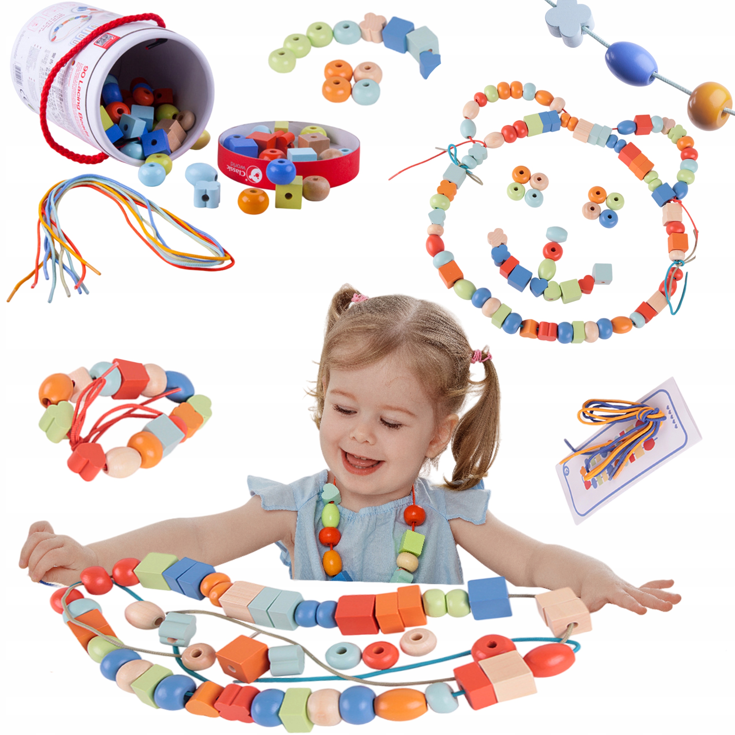 Барвистий набір бісеру для нанизування. У набір входить 96 різьбових елементів. Ця іграшка ідеально підходить для подарунка. Створюйте власні візерунки! Ваша дитина може розвиватися як стиліст ювелірних виробів.