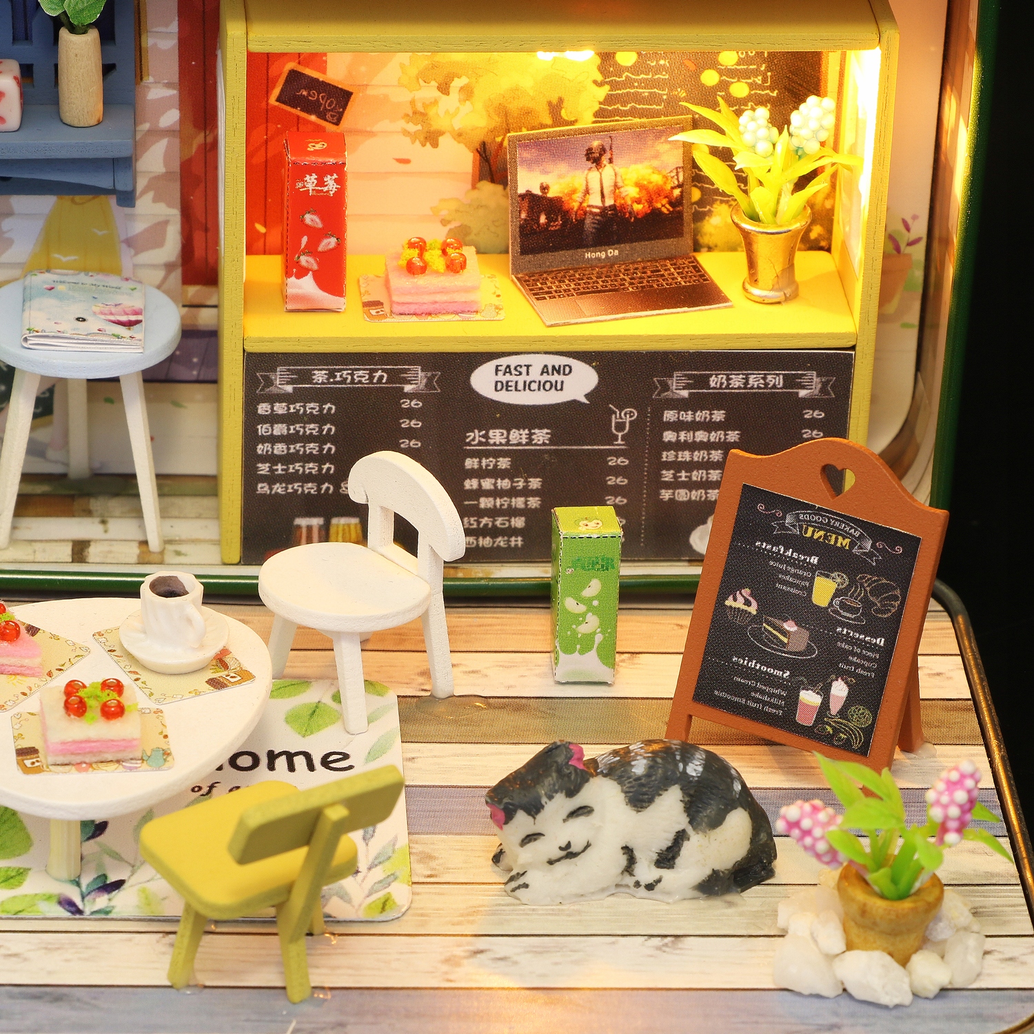 Дерев'яний будиночок DIY CAFE CAT в світлодіодній коробці