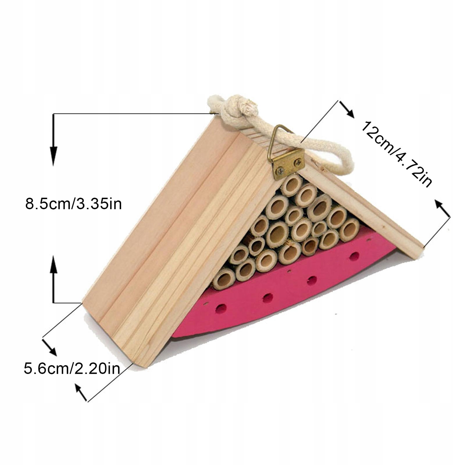 Вгорі є петля для підвішування. Готель для комах також є чудовою можливістю знайти та поспостерігати за цими маленькими істотами у вашому саду.