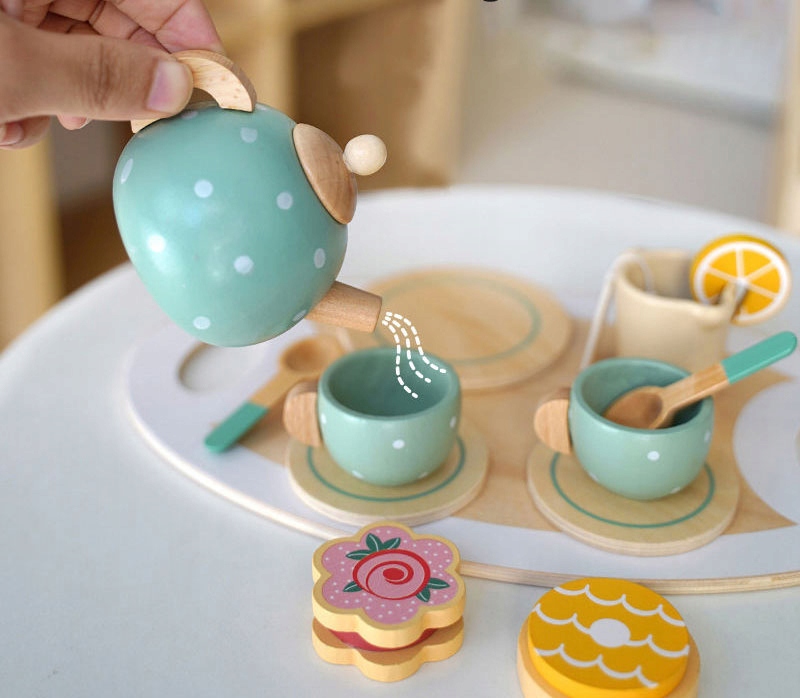 Дерев'яний чайний сервіз пастельних тонів це унікальне доповнення до будь-якої дитячої гри. Він ідеально підходить для організації милих зустрічей з ведмедиками, ляльками чи друзями, привносячи трохи чарівництва в повсякденні моменти.