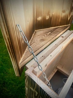 Петлі вже прикручені до камери, ланцюг фіксує надмірний нахил даху.