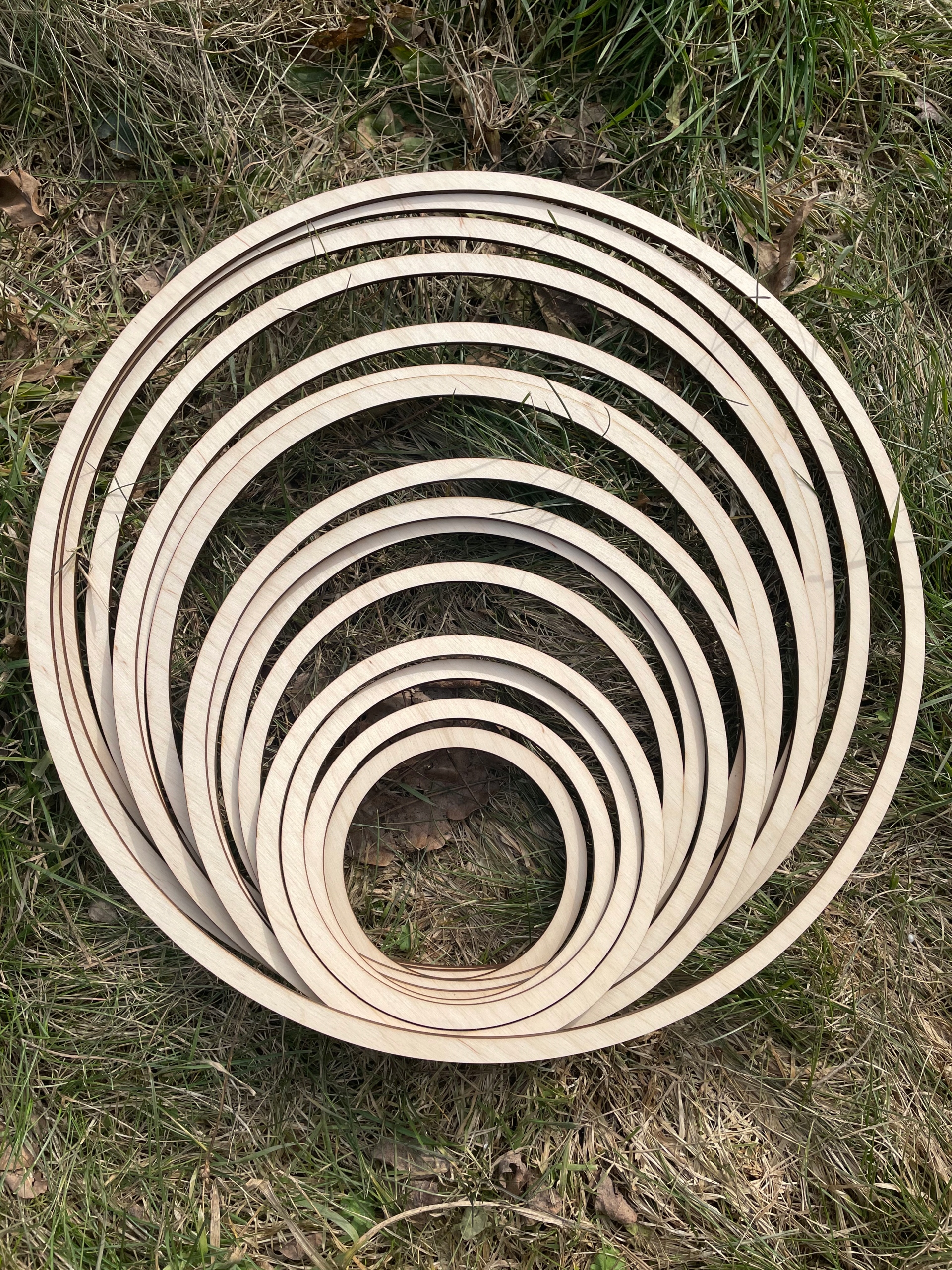 Кільця з березової фанери товщиною 3 мм кольору натурального дерева.