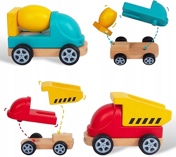 - Розмір і ємність: кожен автомобіль має розміри 10,5 х 8 х 8 см, що робить його ідеальним рішенням для маленьких рук. Цей набір містить бетонний міксер і вантажівку.