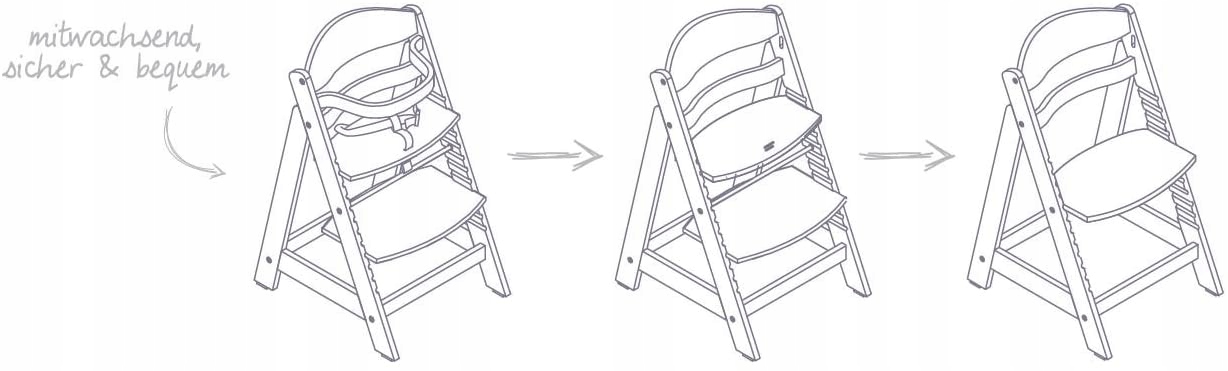 Дерев'яне крісло забезпечує дитині ергономічний, безпечний і адаптований комфорт сидіння до потреб дитини з раннього віку для довге життя. Незалежно від висоти столу та віку дитини, стільчик дозволить дитині брати активну участь у сімейному житті під час прийому їжі. Вінбезпечний завдякинаголів'ю та захисним ременям. Після легкого зняття наголів'я та системи ременів він зростає разом з дитиною. Крісло має сидіння та підніжку з регулюванням по висоті та можливістю розбирання. b>
