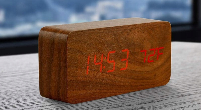 Дерев’яний годинник настільного годинника Дата електронна температура світлодіод
