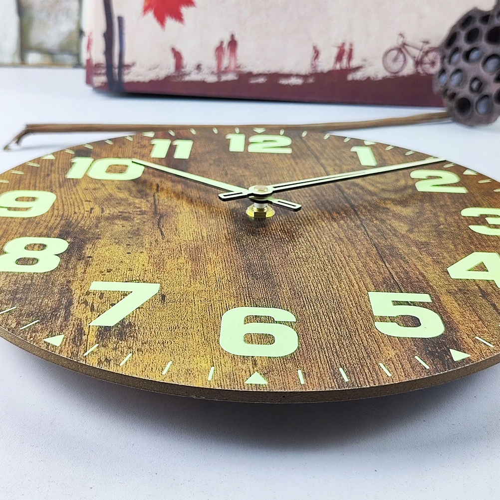 Дерев'яний годинник настінний годинник спальня сяючий настінний вогонь