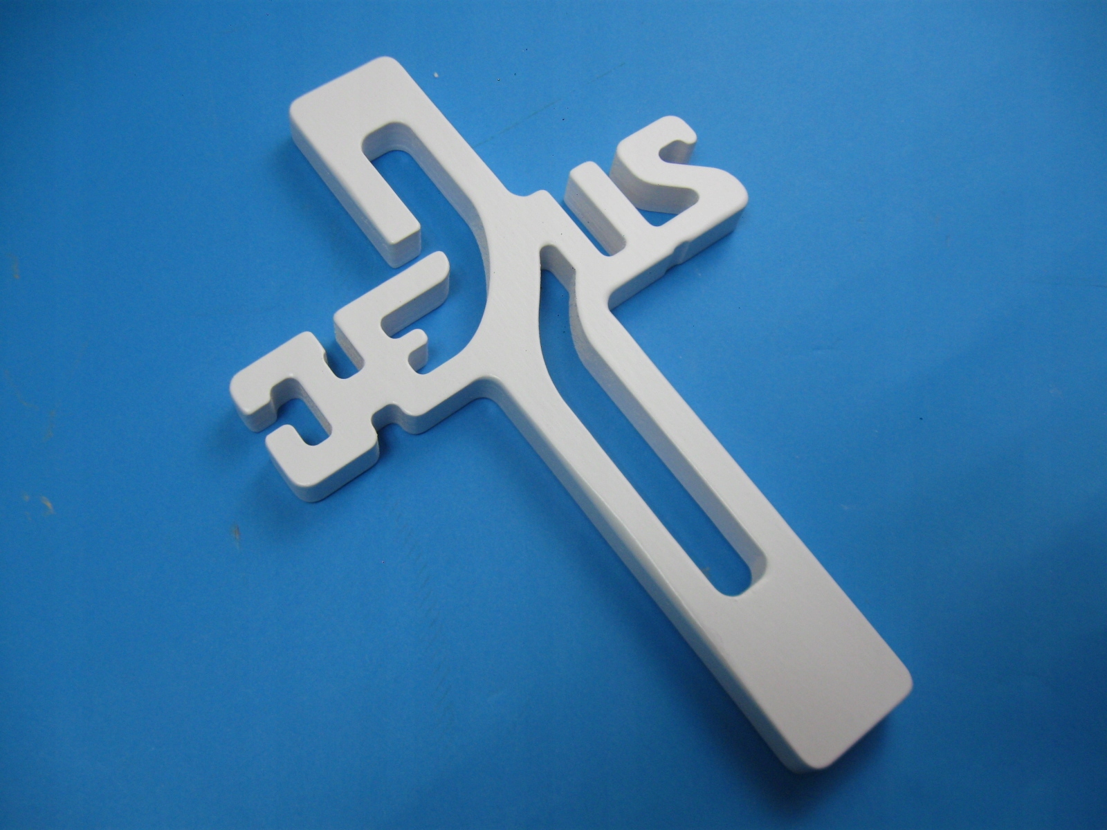 Дерев'яний хрест Білий фрезерний Ісус - 50 см