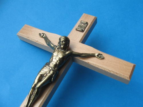 Дерев'яний хрест світло -коричневий на стіні 27 см