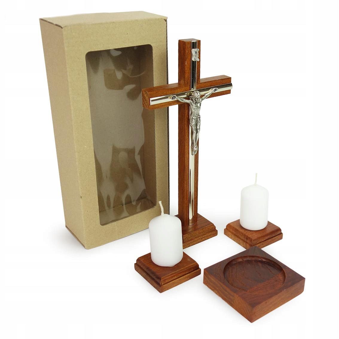 - Свічники: два дерев'яні свічники, прості й елегантні, ідеально поєднуються з рештою набору.