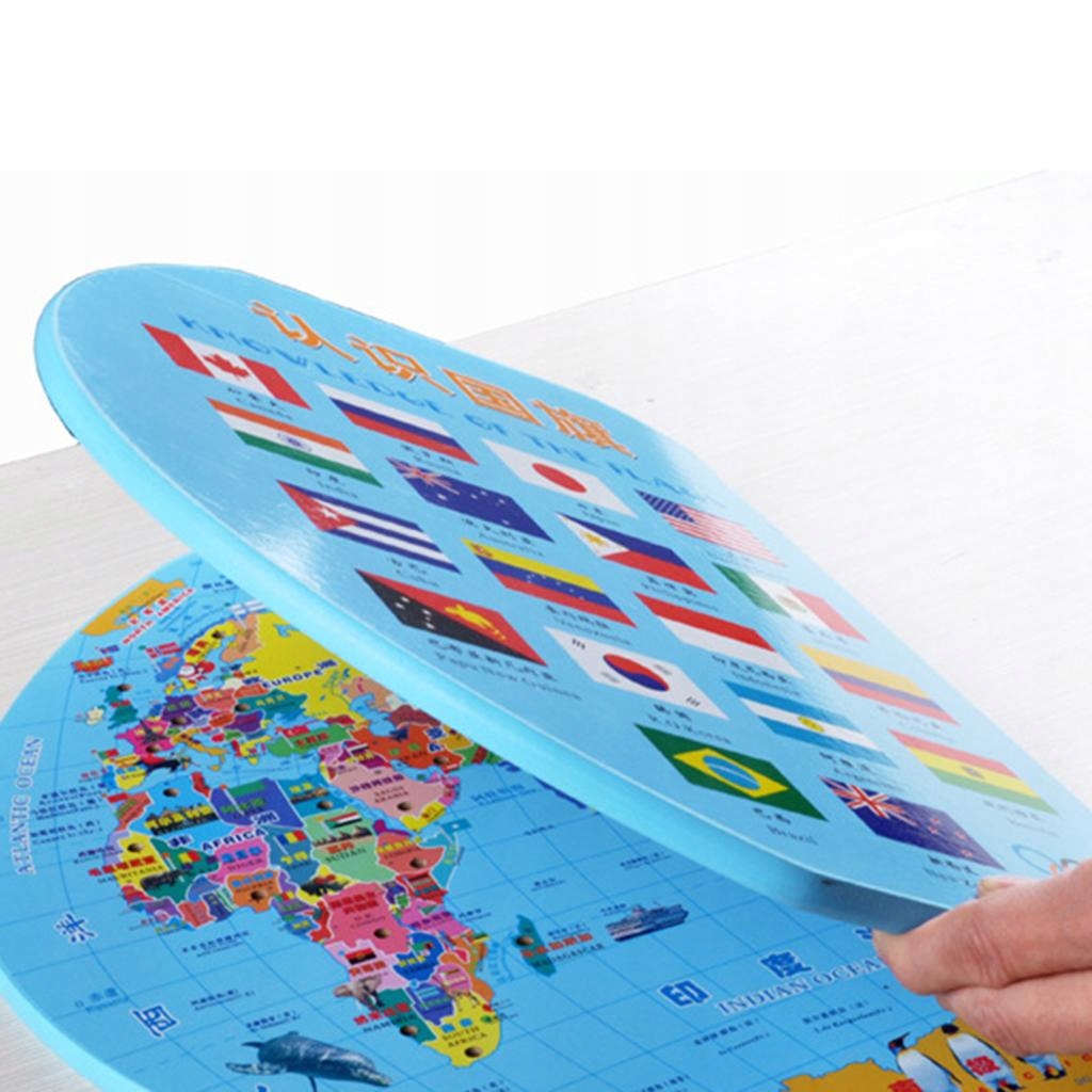 Дерев'яна карта світу з 36 прапорцями, що відповідають географічній грі, розвиваючій іграшці для дітей