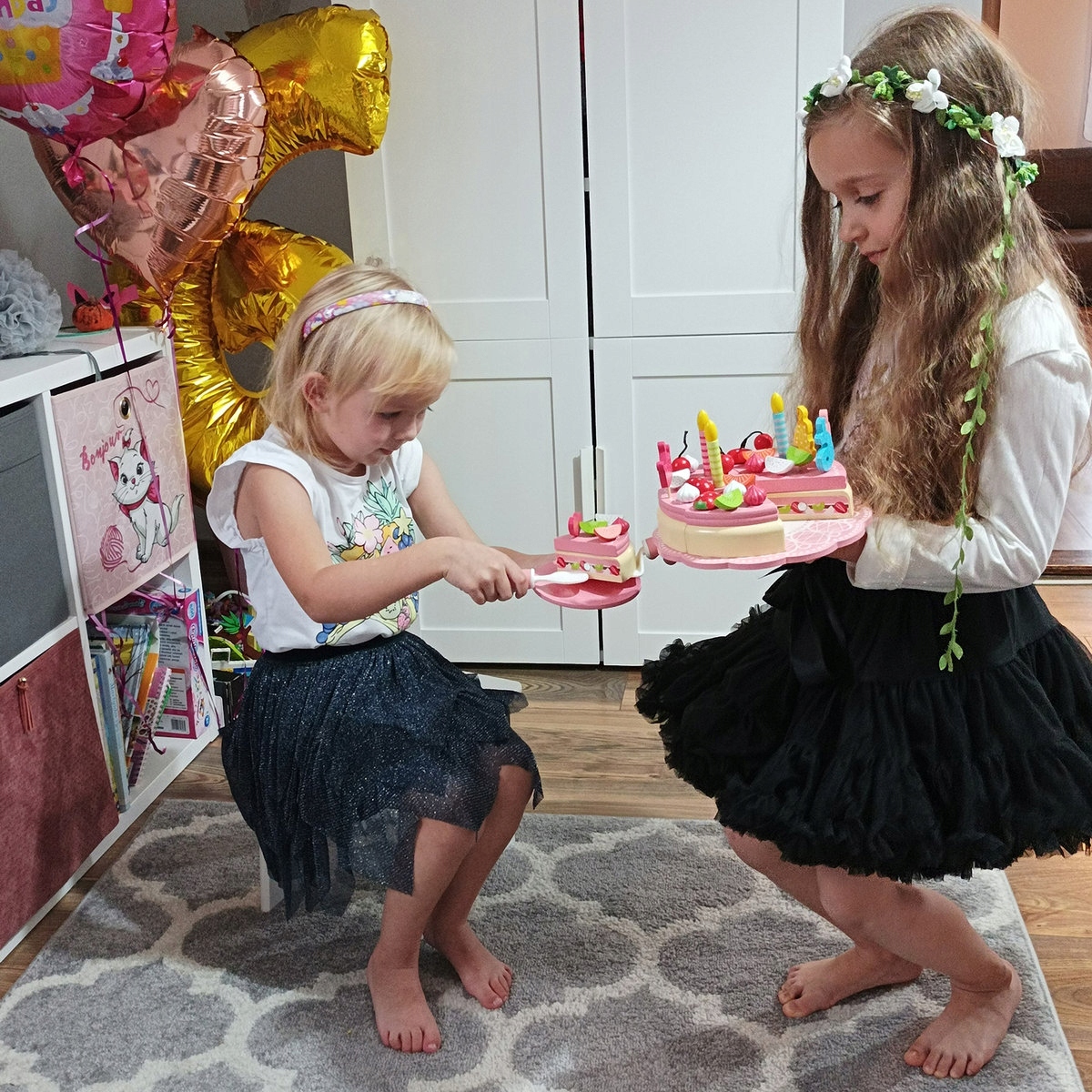 - КРЕАТИВНА РОЗВАГА – ви можете прикрасити красивий торт до дня народження за власними ідеями. У набір входить багато аксесуарів, таких як фрукти, меренги та свічки, які можна поставити на торт. Це дає вам необмежені можливості для творчих розваг протягом багатьох годин. Частини, з яких складається торт,з'єднані між собою магнітами. Готовий, прикрашений торт можна «різати справжнім ножем» і розкладати по тарілках. Це чудова вправа для розвитку ручних навичок найменших дітей, а також ідеальне тренування перед тим, як навчитися різати справжнім ножем.