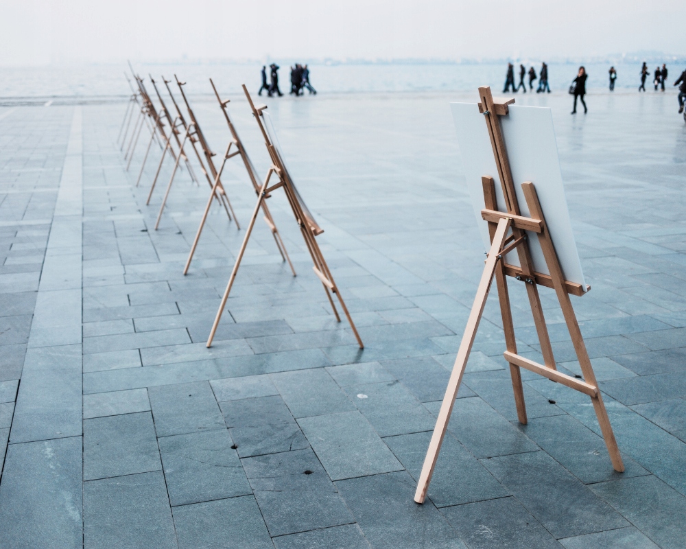 твердий і стабільний дерев'яний мольберт висотою 150 см з натуральної сосни. Розроблений як для початківців, так і для професійних художників , а також для презентації творів, виставок плакатів або реклами .