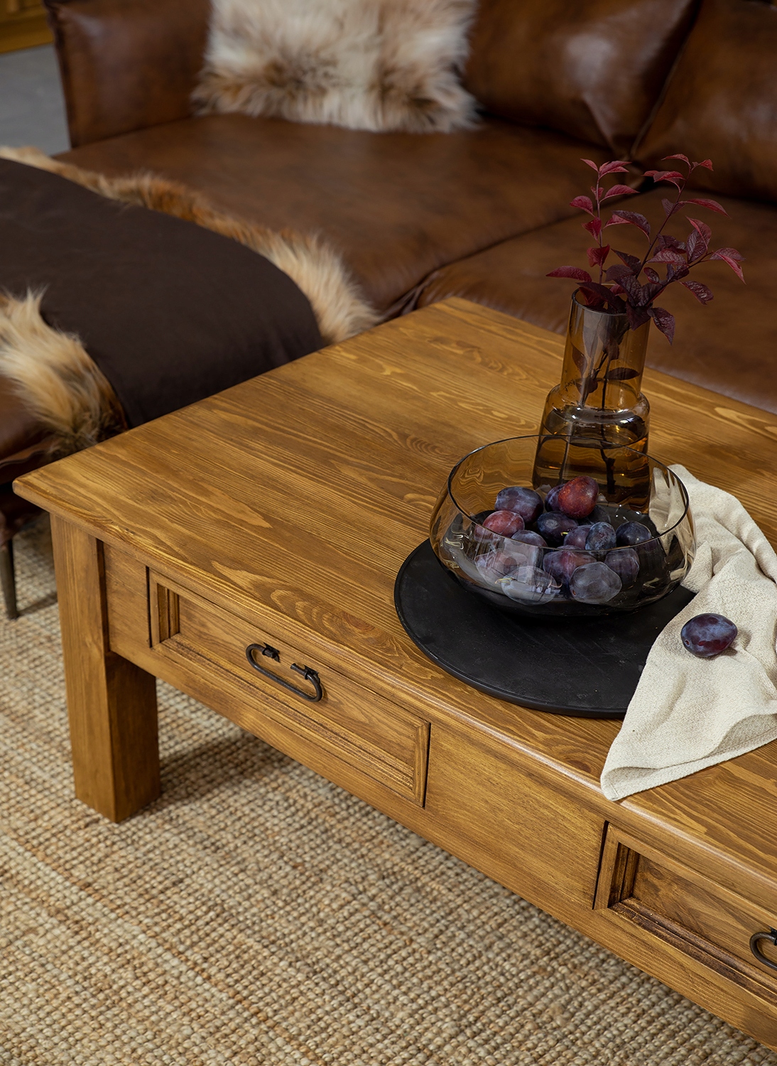 Крім того, меблі дуже характерні для сільського та провансального стилю . Перш за все, ключовим є те, що людина, що сидить на дивані, може комфортно розміщувати предмети на лавці. Поверхня стільниці дуже важлива: якщо наша родина велика, і всі ми любимо проводити час разом, наприклад, під час екранізації плівки, ми не можемо вибрати невеликий журнальний столик. Завдяки ящику, який розміщується під стільницею, ми можемо розмістити невеликі предмети, такі як пульт дистанційного керування телевізором, кабелі або газети.