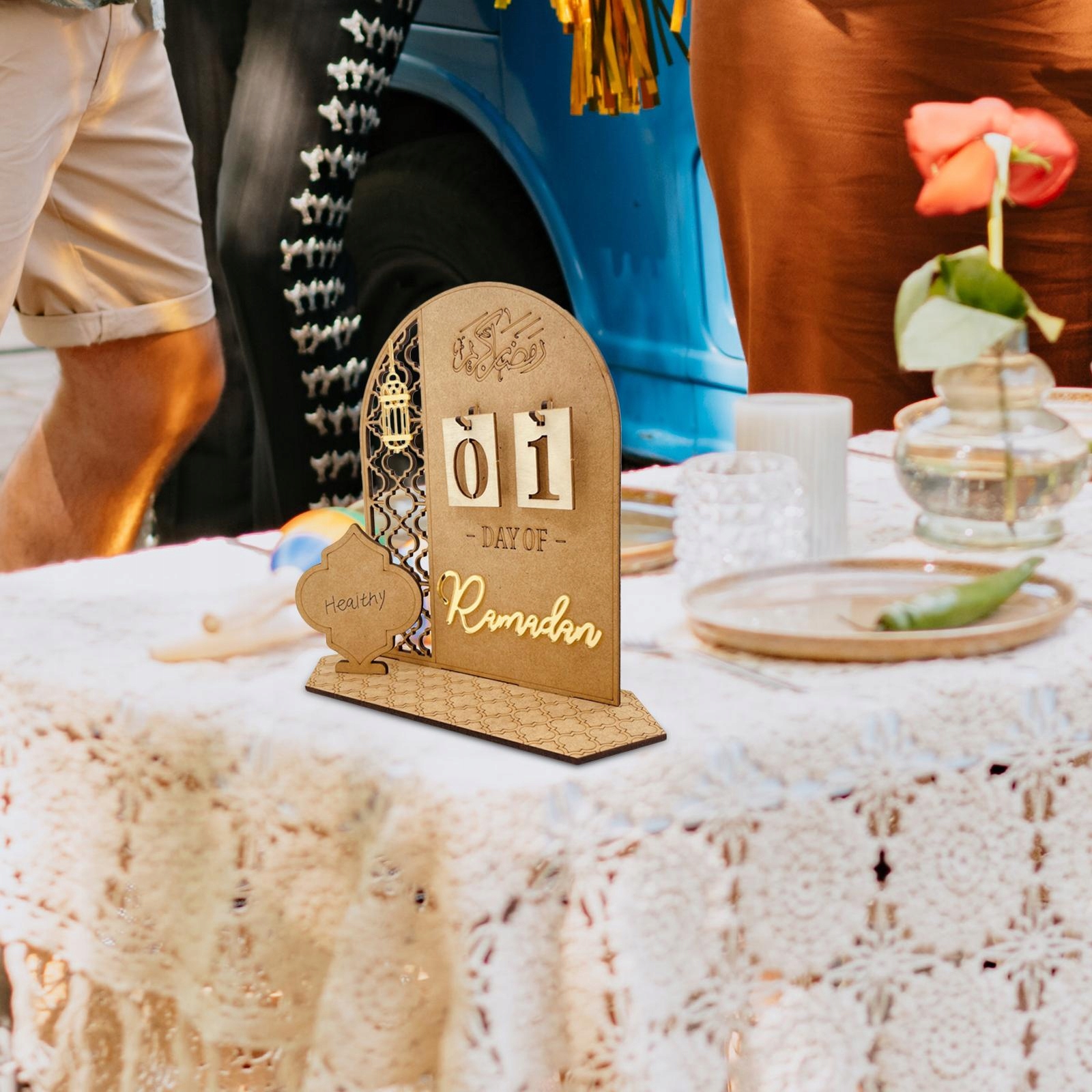 Цей календар зворотного відліку Ід Мубарак, виготовлений із високоякісної деревини, прикрашений дуже деталізованими улюбленими елементами Ід Мубарак