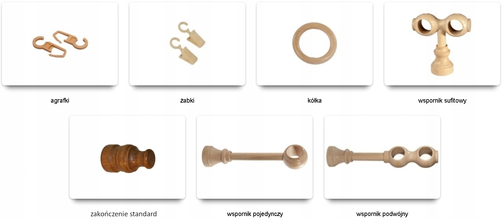 На наших аукціонах представлені також індивідуальні аксесуари для дерев'яних карнизів, завдяки яким можна розширити набір або замінити пошкоджені деталі.