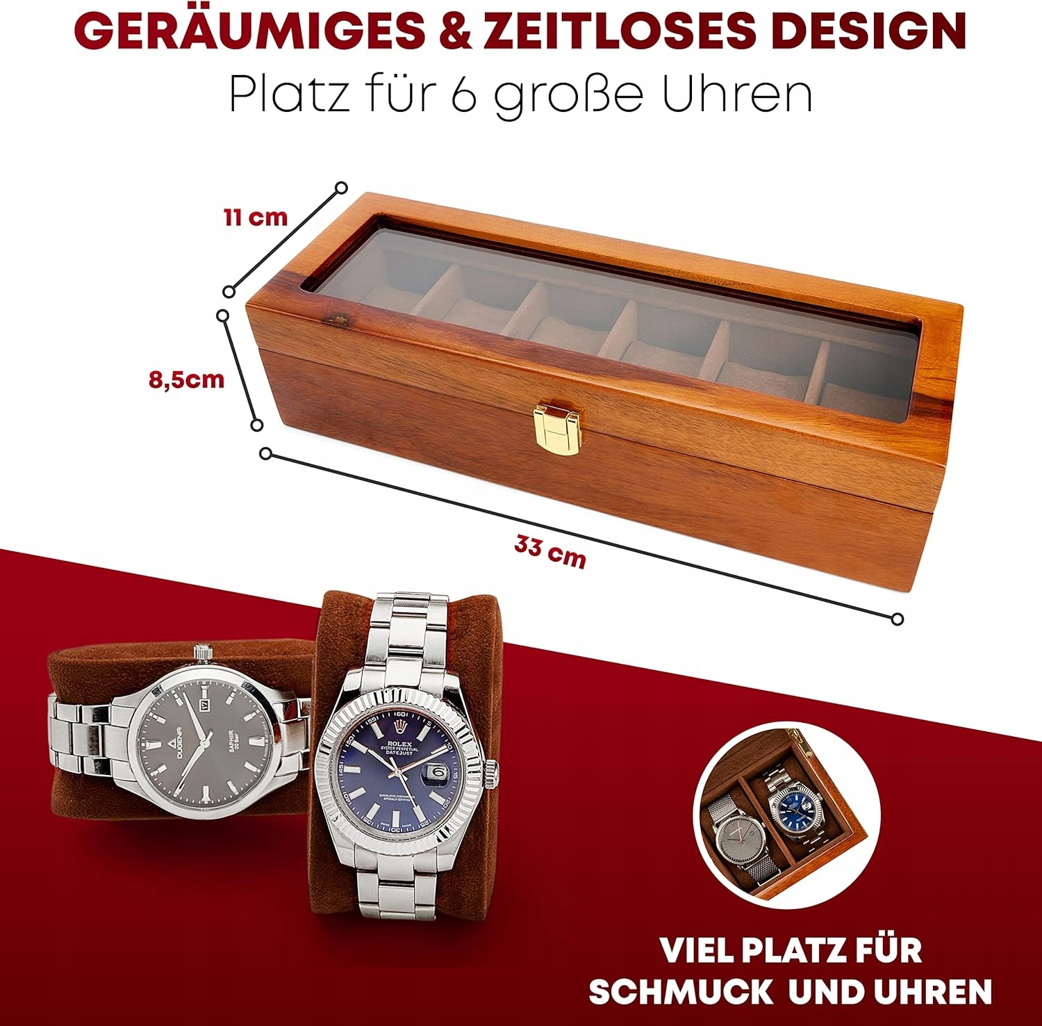 - ✅ Дизайн: Watch Box пропонує класичний, але також елегантний дизайн. Завдяки блискучому, але також простому кольору деревини, він забезпечує гармонійний око -привернення