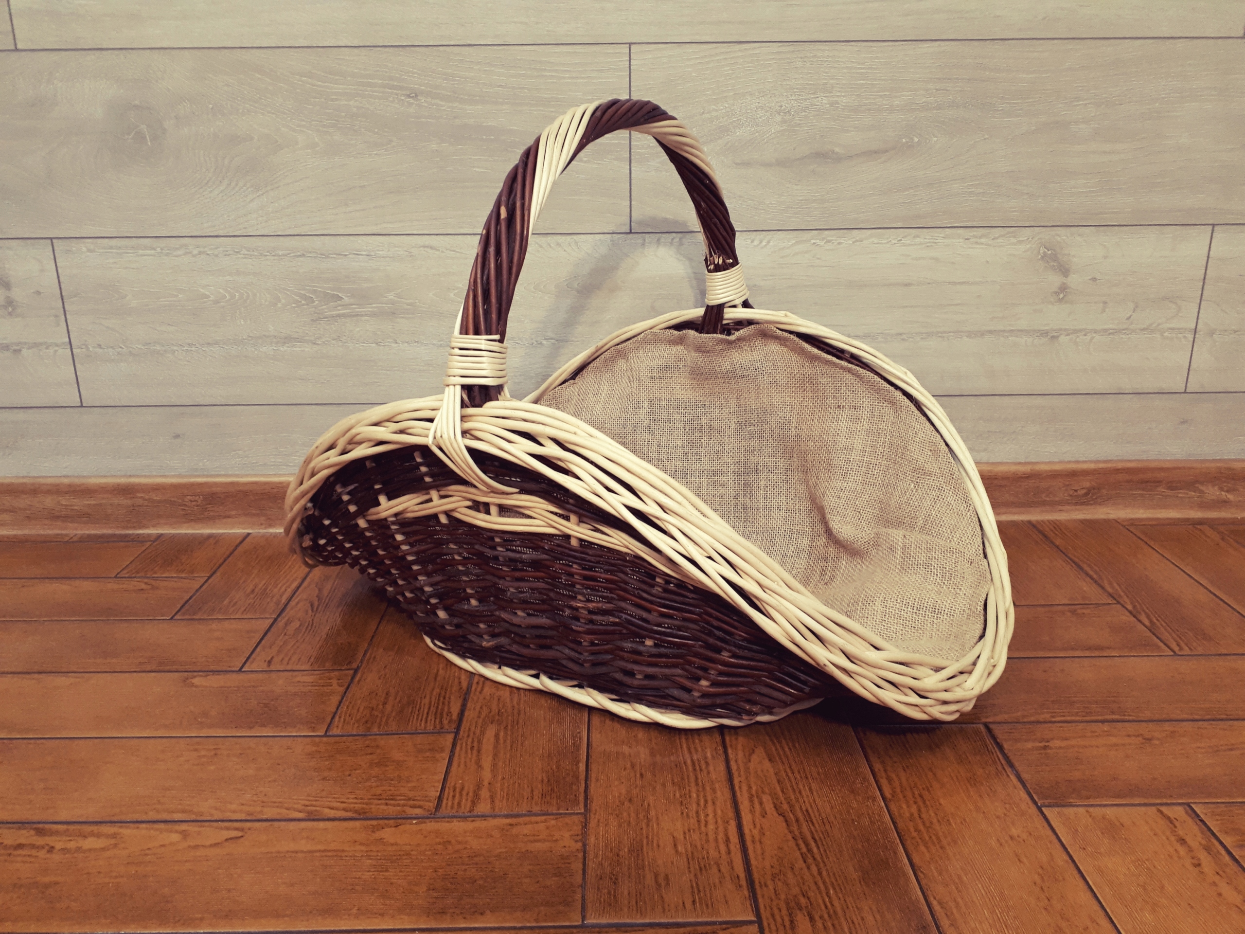 ДЕРЕВ'ЯНИЙ КОШИК-ПРИКРАШЕНИЙ БІЛИЙ ПЛЕТЕНИЙ + МІШКОВИНА