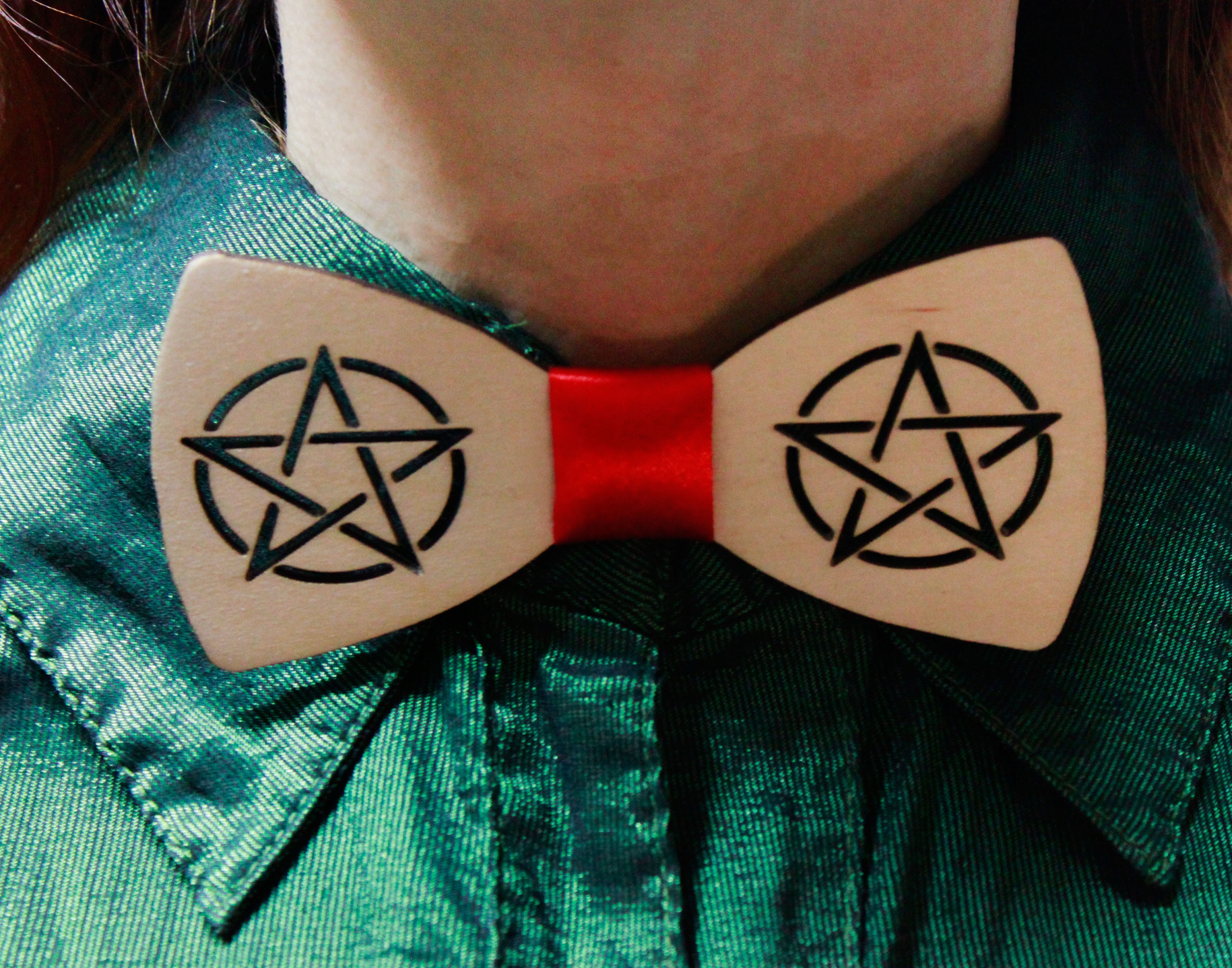 Дерев'яний краватка-метелик унісекс Пентаграма зірка Вікка