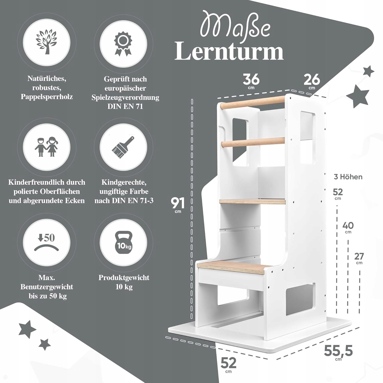 - Висока якість - завдяки додатковим функціям безпеки наша освітня вежа безпечна та чиста. Абсолютний всебічний захист навіть для наймолодших. Завдяки дуже міцній і безпечній формі.