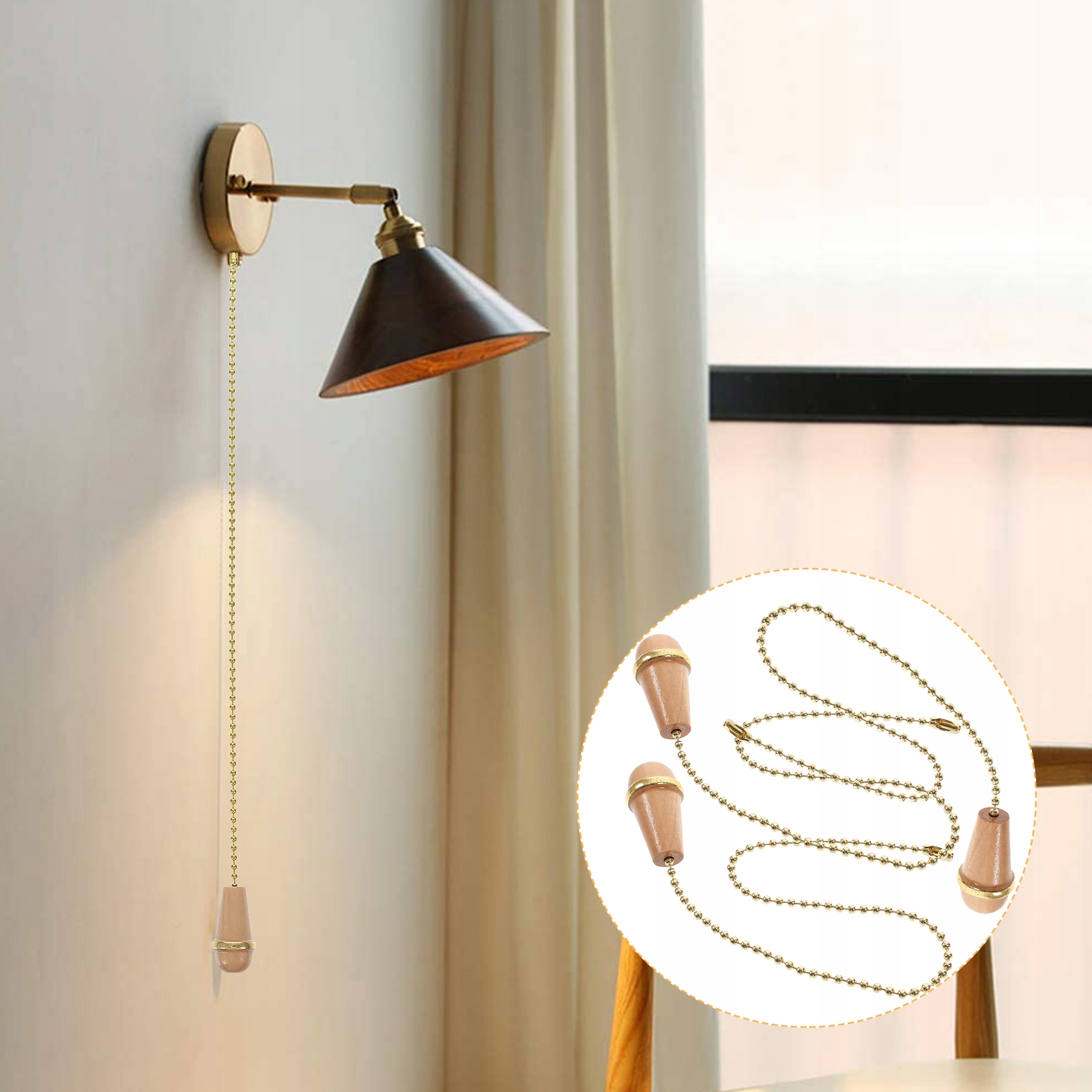 Виготовлений із деревини та металу, міцний і практичний у використанні. Поставтеся з дерев’яною конструкцією, щоб зробити цей ланцюг вентилятора унікальним і креативним, і це зручна заміна вашим зламаним або застарілим тяговим ланцюгам. Ідеально підходить для стельового вентилятора, стельових світильників, нічних ламп та інших випадків.