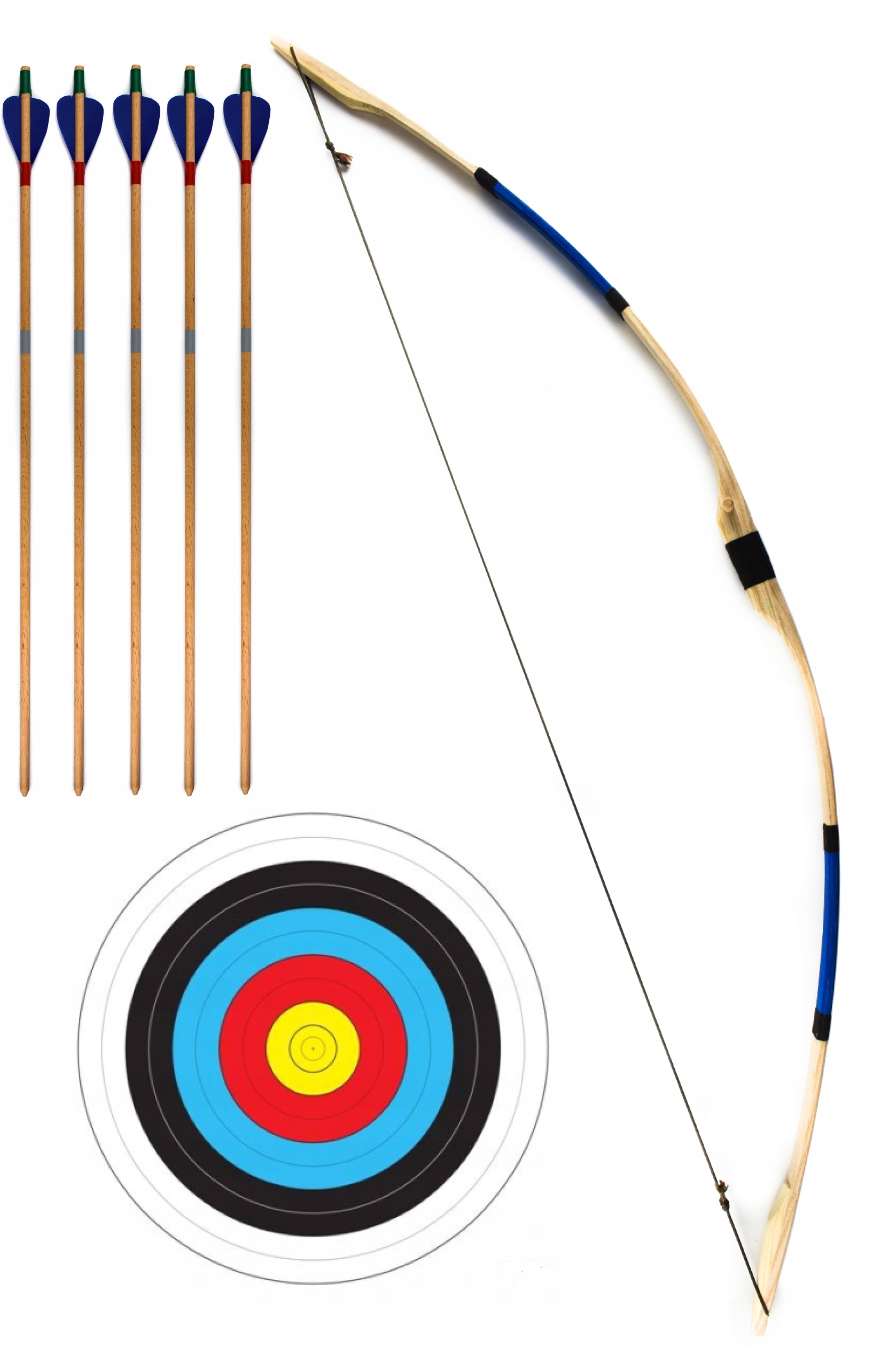 ДЕРЕВ'ЯНИЙ ЛУК 115 см 5 СТРІЛ + ЩИТ СИНИЙ НАБІР