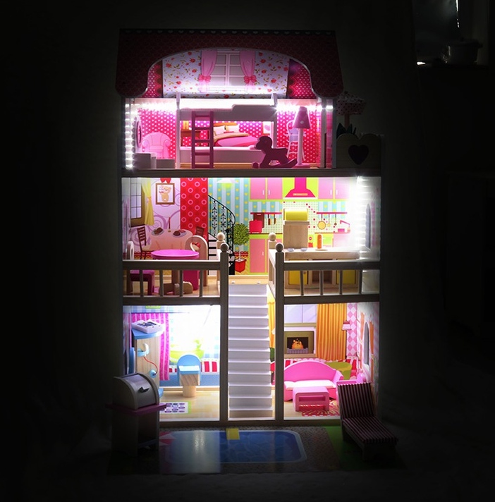 ДЕРЕВ'ЯНИЙ ЛЯЛЬКОВИЙ БУДИНОК XXL З БАСЕЙНОМ МЕБЛІ СВІТЛОДІОДНЕ ОСВІТЛЕННЯ