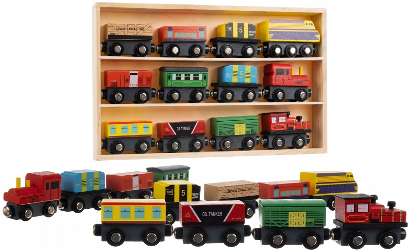 Набір містить багато елементів - він складається з 3 локомотивів і 9 вагонів різних кольорів, тому дерев'яний потяг стане ідеальною іграшкою, яку ви не отримаєте давно нудно.час.