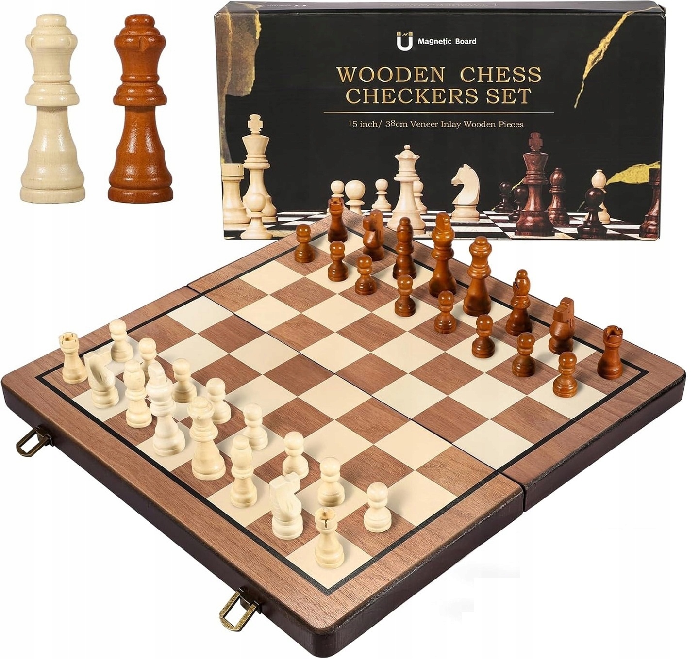 Наші шахи, скульптурні сосною високої якості, оснащені магнітами на дні, які підтримують їх стабільними на місці під час гри. Крім того, плюшевий клин на дні захищає як шахові фігури, так і дошку від зносу.