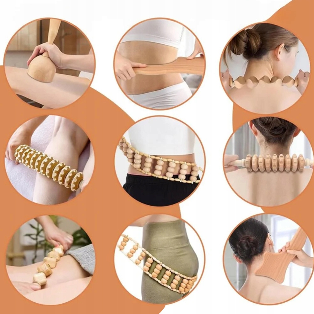 Відкрийте для себе набір із 7 дерев'яних масажних інструментів, створених з метою мадеротерапії, зменшення целюліту та формування тіла. Виготовлений із 100% натуральної деревини бука, забезпечує безпечний і комфортний масаж.