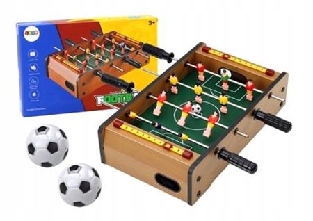 Міні-дерев'яний настільний футбол 36 см х 21,5 см х 9 см Мініатюрна версія легендарної настільної гри - Настільний футбол! Це ідеальне рішення для футбольних уболівальників, які хочуть відчути хвилювання та змагання в зручній, компактній формі. У цій версії ви можете насолодитися азартом від гри в настільний футбол навіть на маленькому полі! У кожного гравця є власний лічильник голів, який дозволяє точно відстежувати рахунок і будувати стратегію на основі його поточного стану. Поле поділено на дві команди, кожна з яких позначена футболками характерного кольору, що сприяє швидкій ідентифікації під час матчу. Управління гравцями здійснюється за допомогою ручок, що забезпечує повний контроль над їх рухами. Ведіть, пасуйте та забивайте голи, щоб перемогти суперника та здобути перемогу в захоплюючих турнірах зі своїми близькими. Гра в настільний футбол - це чудова розвага для всієї родини та чудовий спосіб провести час з друзями. Незалежно від віку, кожен може насолодитися цією класичною розвагою. Завдяки своїм компактним розмірам і міцній дерев'яній конструкції ці настільні футболи забезпечать багато годин веселощів і задоволення як дітям, так і дорослим. Відкрийте для себе радість змагань і веселощів разом. Розміри столу: 36 см x 21,5 см x 9 см Розміри упаковки: 37 см x 24 см x 7 см Сертифіковано CE та відповідає стандарту EN71. Призначений для дітей старше 3 років