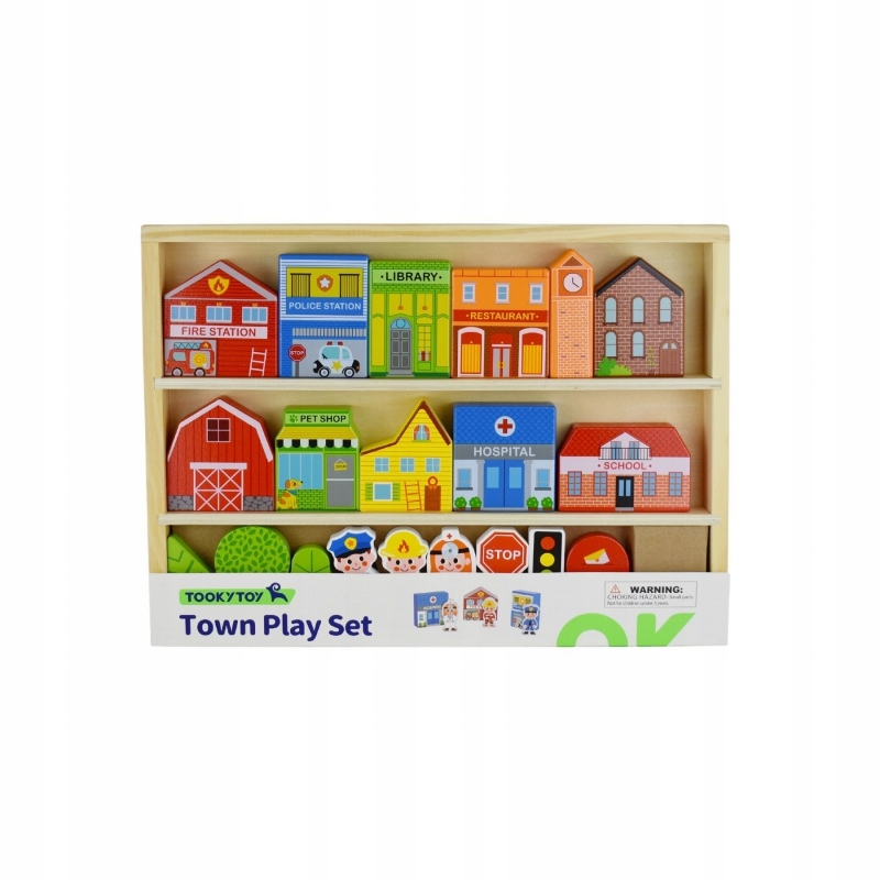 Набір будівель та фігурки від бренду іграшки з takey дозволять вам побудувати своє маленьке містечко і почати відірвати фігури різні сцени, які можуть статися в ньому. Набір дозволяє грати собі , але це також ідеальне доповнення до інших наборів. Набір включає дерев’яну коробку з відділеннями, 11 будівельних фігурки , 3 фігури символів , включаючи: пожежник, поліцейський і доктор та 6 фігурки інших предметів: зупинки, дорожні вогні, два дерева, пробивання та коробка для пропусків. Граючи ролі, дитина розвиває свою творчість, уяву та соціальні навички . Весь виготовлений з найвищої якості матеріалів та пофарбованих нетоксичними фарбами, безпечними для дітей та навколишнім середовищем.