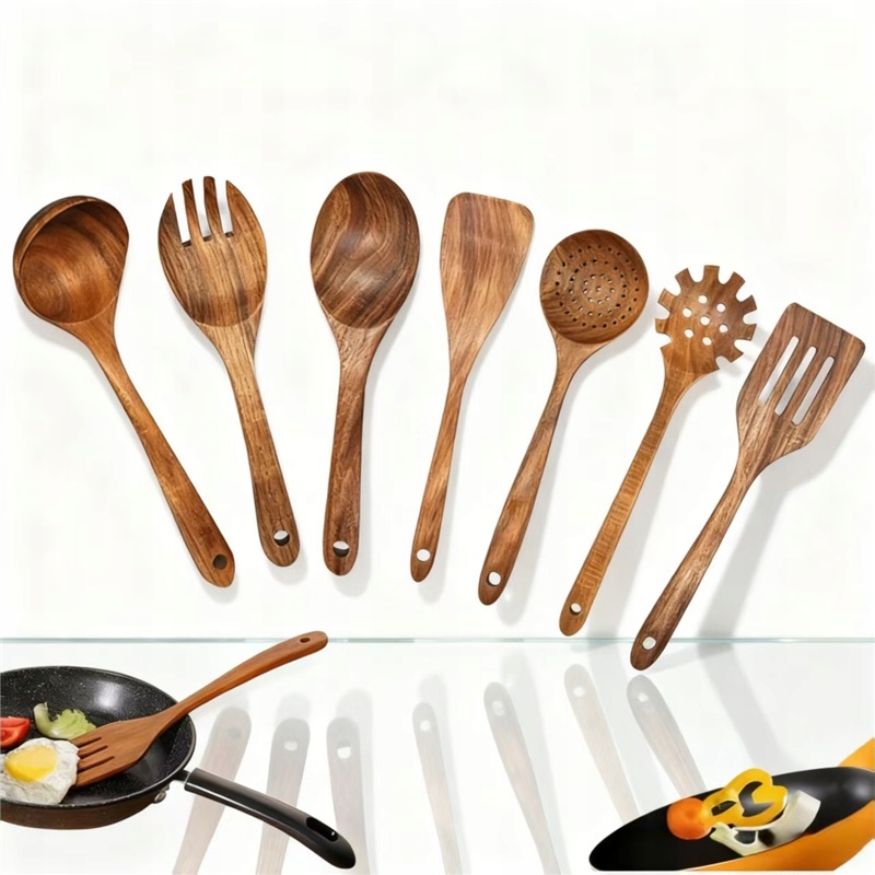 🔥 Стійкість до високих температур, підходить для сковорідок з антипригарним покриттям: дерев’яні кухонні аксесуари мають дуже хорошу термостійкість — вони не тріскаються й не плавляться під час високої температури, уникаючи проблем деформації, які можуть виникнути з гумовими виробами. Дерево також має хорошу теплоізоляцію, тому під час використання ви не обпечете руки. Усі інструменти мають закруглені краї, які не подряпають цінні сковорідки з антипригарним покриттям, забезпечуючи безпечне та комфортне приготування їжі.