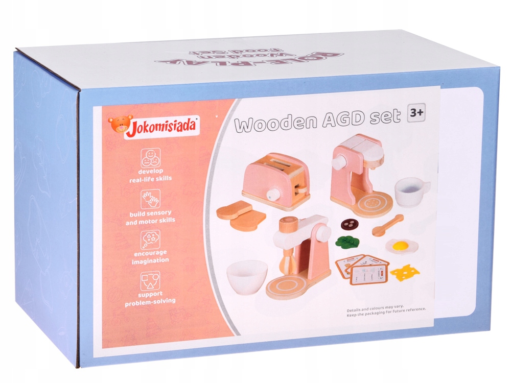 Виведіть повсякденні розваги на кухні на вищий рівень з красивим дерев'яним набором побутової техніки, який включає тостер, кавоварку, міксер і набір аксесуарів. Це пропозиція, створена для маленьких кухарів, які хочуть готувати смачні сніданки та десерти для своїх ляльок, ведмедиків або друзів.