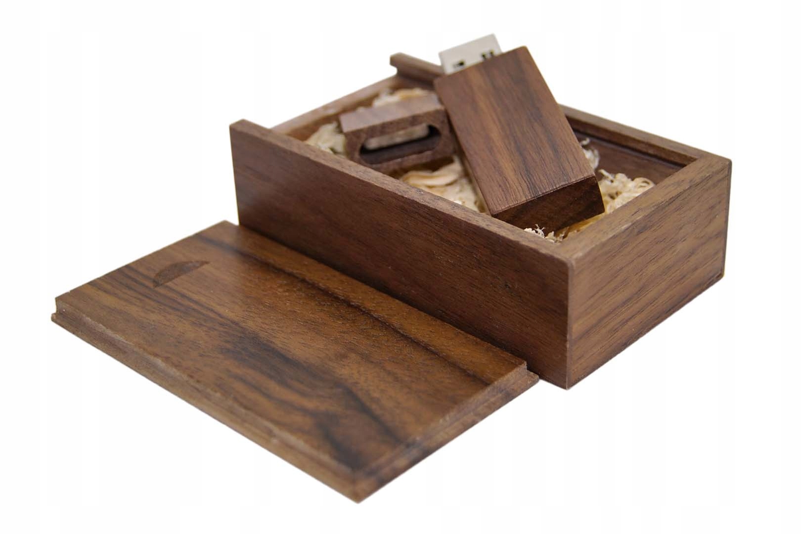 USB-пам'ять у прямокутному дерев'яному корпусі. Крім того, він має гарну дерев’яну коробку.