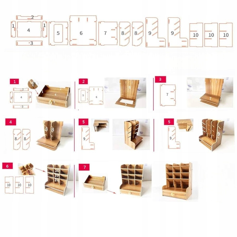 ✔️ Просте збирання: Органайзер складається з 15 частин, які легко зібрати самостійно. Збірка дуже проста, в кожному наборі є гвинти, викрутка і ручка. У набір також входить інструкція по збірці.