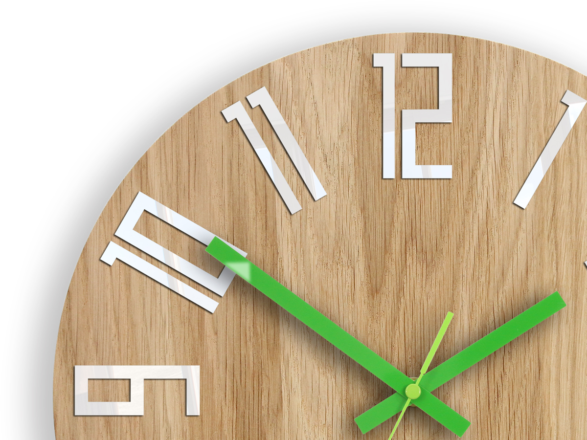 ДЕРЕВ'ЯНИЙ НАСТІННИЙ ГОДИННИК - ДУБ СЛІМ ІЗ ЗЕЛЕНИМИ СТРІЛКАМИ -