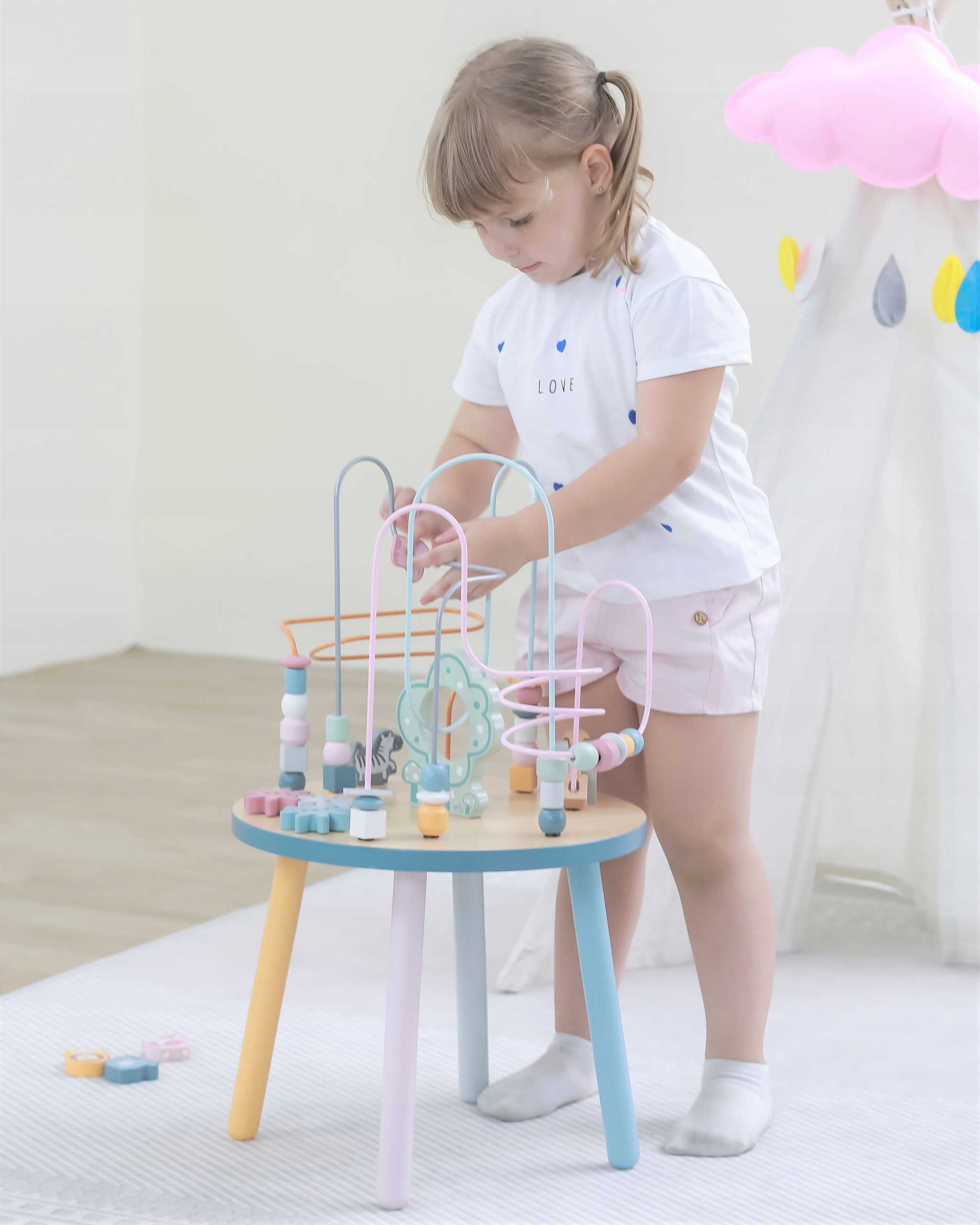 - Дерев'яний навчальний стіл подарує дітям масу задоволення, а під час гри діти будуть практикувати свій посібник навички та сприйняття кольорів і форм.